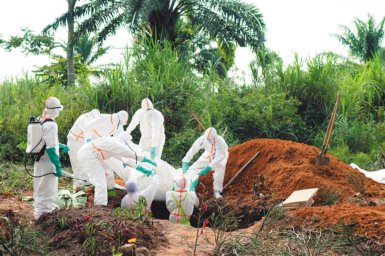 埃博拉病毒经由直接接触已感染患者或动物的血液、体液、分泌物和排泄物等传播。人一旦感染,会出现发热、呕吐、出血和多脏器损伤等症状,死亡率为50%至90%。