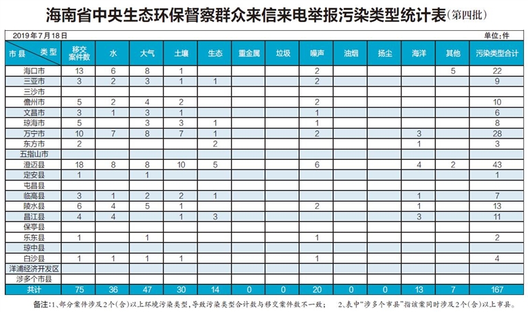 海南省中央生态环保督察群众来信来电举报污染类型统计表(第四批)