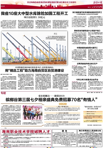 海南日报 关注海南自由贸易试验区建设项目(第五批)集中开工和签约 004 2019-07-191 2019年07月19日 星期五