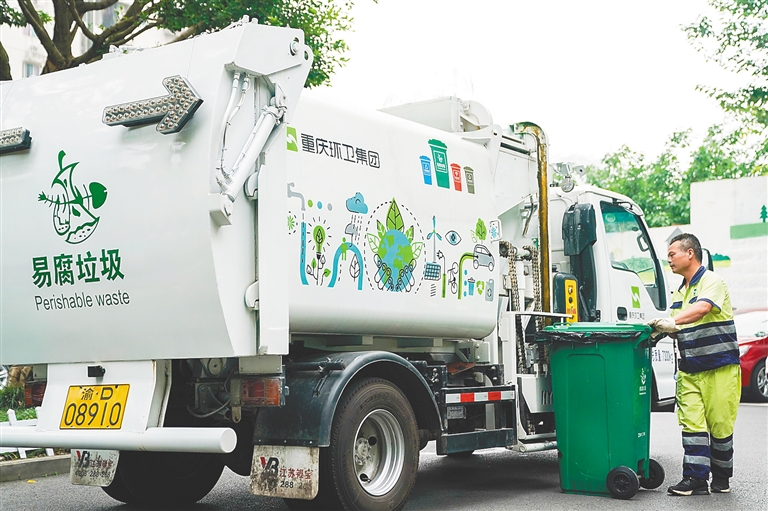重庆市城市管理局相关负责人介绍,重庆针对有害垃圾、易腐垃圾、可回收物和其他垃圾四大类生活垃圾,专门明确不同的收运主体和收运方式进行分类运输。以重庆主城区为例,重庆环卫集团配套易腐垃圾、有害垃圾、可回收物、其他垃圾等四类专业收运车300余辆,车身分别喷绘统一的分类收运标识,每类收运车都只能收运其对应的垃圾种类,所有车辆均外观密闭、环保、美观,杜绝垃圾“先分后混”和“跑冒滴漏”的问题。
