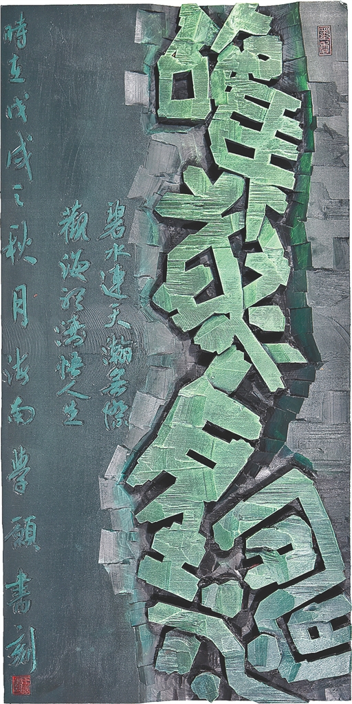目前,海南热衷于现代刻字艺术的创作者大约百余人,其中大多数如石江雄、陈晓一样的书法、美术工作者,除了具备书法功底,还具备一定的构图能力、美术水平与创新意识。