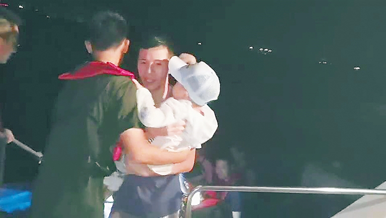 当日18时45分许,海南海警接到海南海警局95110海上报警平台报警后,立即派出3002艇紧急驰援目标海域,并与报警人时刻保持联系,获取具体位置,确认人员安全情况。事发地在临高金牌港附近一无居民海岛上,19时10分许,海警官兵发现被困人员,但因海岛周边海域水浅、礁石多,3002艇难以驶至岸边。随后,海南海警立即协调当地渔船,并安排2名官兵随船抵近救援,3002艇在合适位置接应。在渔船抵近该海岛周边海域后,亦因水浅、礁石多等原因,未能如愿靠岸。随后,海警官兵果断决定,渔船立即停船,将救生绳抛向沙滩,由被困人员将渔船拖至岸边,1名官兵下水放好登船梯,帮助被困人员逐一登上渔船,并转移至3002艇。最终,20名被困人员成功获救。