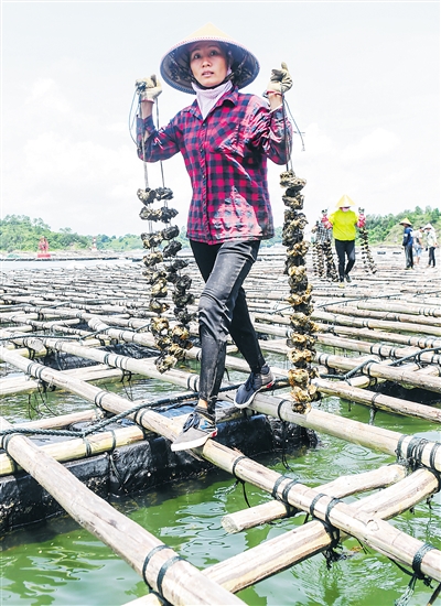 近年来,广西钦州市借助茅尾海天然港湾优势,着力发展生态“蓝色粮仓”,大力建设海洋牧场。目前已形成以七十二泾海域为中心的连片万亩大蚝养殖基地5个,全市大蚝养殖面积达15.8万亩,产量27.6万吨,产业综合产值近30亿元。 新华社记者 张爱林 摄