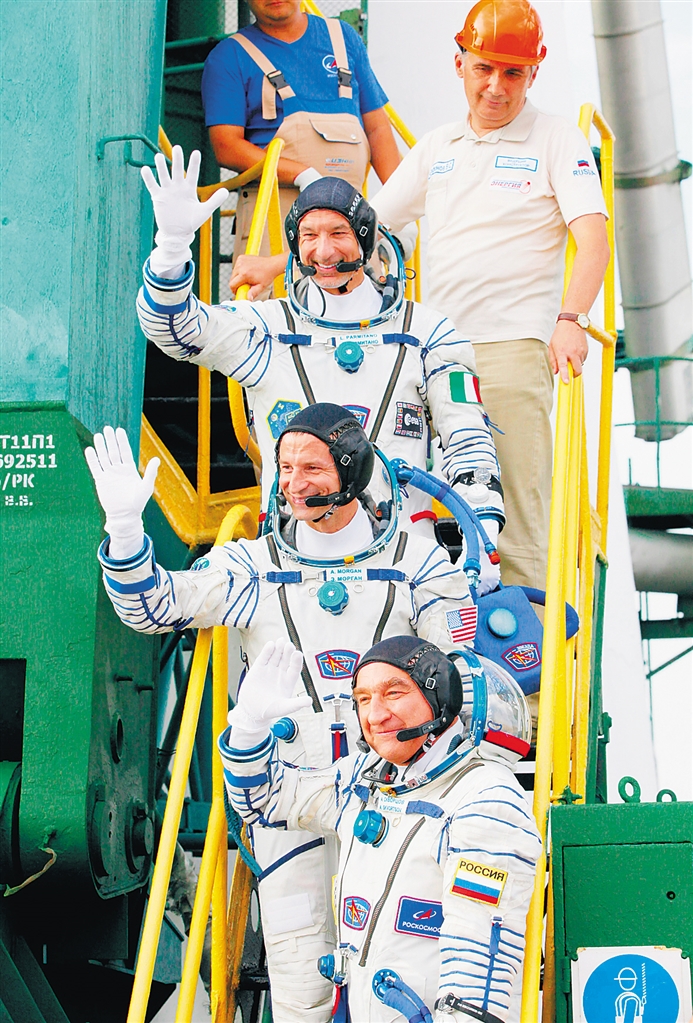 莫斯科时间20日19时28分(北京时间21日凌晨0时28分),载有三名宇航员的“联盟MS-13”飞船搭乘“联盟-FG”运载火箭,从位于哈萨克斯坦境内的拜科努尔发射场升空。俄罗斯国家航天公司21日发布消息说,“联盟MS-13”载人飞船当天与国际空间站顺利对接。新华社/法新