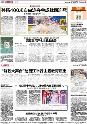 海南日报 体育新闻综合 008 2019-07-221 2019年07月22日 星期一
