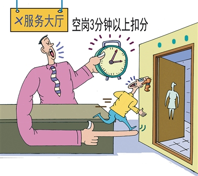 “跑着上厕所”,让人看到了窗口工作人员的不易,也暴露出相关规定的苛刻。诚然,在行政审批服务窗口设定空岗时间,可以提高工作效率,防止工作人员借机离岗,减少办事群众等待的时间。但凡事都有一个度,矫枉过正,不讲情理,不仅会降低工作人员的工作热情,还会影响服务质量。这正是: