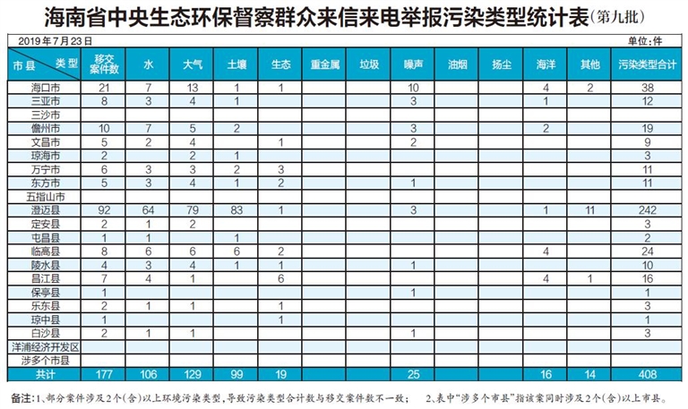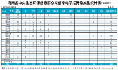 海南省中央生态环保督察群众来信来电举报污染类型统计表(第九批)