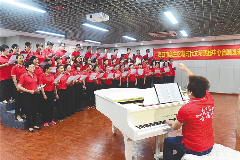 “海口已组建了多个新时代文明实践合唱队,定期组织排练和演出,通过歌声把新时代文明实践唱入百姓心坎,积极引导群众牢固树立齐爱国、心向党的价值取向。”海口市委宣传部相关负责人介绍,海口将充分采取更多接地气的举措,吸引越来越多的群众参与进来,让新时代文明实践中心真正成为联系群众的阵地。