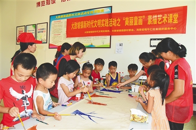 “我们把文化馆、美术馆、党员活动室、农家书屋、农村健身活动广场等482个阵地资源统筹起来,统一调配使用,形成功能互补的文明实践服务集群。”海口市委常委、宣传部长王忠云举例,在琼山区红旗镇和美兰区演丰镇,农村闲置学校被建设成新时代文明实践站,原来的教室变成了文化礼堂、卫生室、老年人活动中心,原来的操场变成了村民户外运动场,“成为了名副其实的百姓之家”。