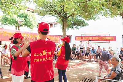 除了整合阵地资源,海口还整合了农村现有驻村人员队伍,以乡村振兴工作队为主体,组成农村新时代文明实践工作队伍,让他们当好宣传服务志愿者,在新时代文明实践中心建设工作一线勇当先锋、做好表率。