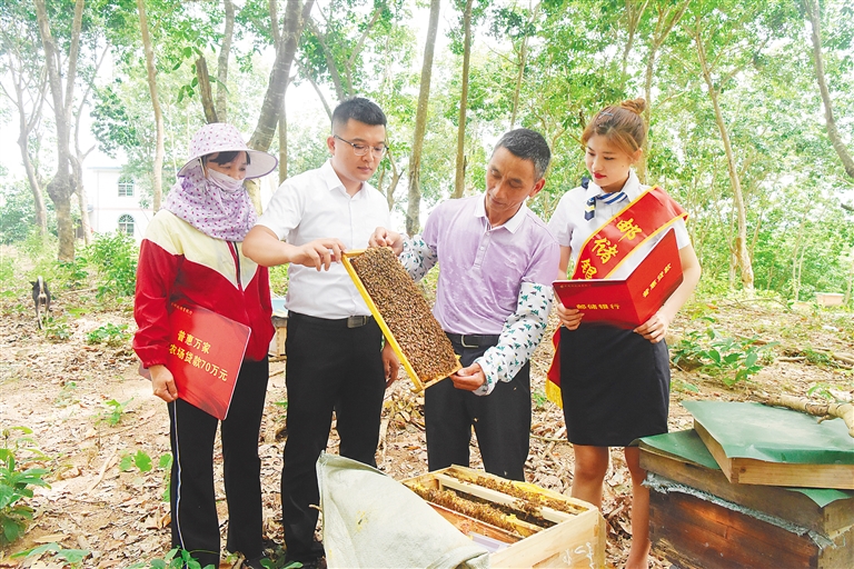 邮储银行海南省分行工作人员向农户了解信贷需求。海南邮储银行供