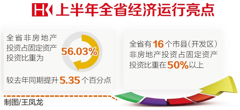 利用数据,王渊将上半年我省投资结构情况“具象”呈现:“从1月至6月投资结构来看,全省非房地产投资占固定资产投资比重为56.03%,较去年同期提升5.35个百分点。分市县来看,全省有16个市县(开发区)非房地产投资占固定资产投资比重在50%以上,其中,有5个市县(开发区)占比超80%。全省非房地产投资占比继续提高,投资结构持续优化,固定资产投资逐步呈现从量变到质变的良好运行态势。”
