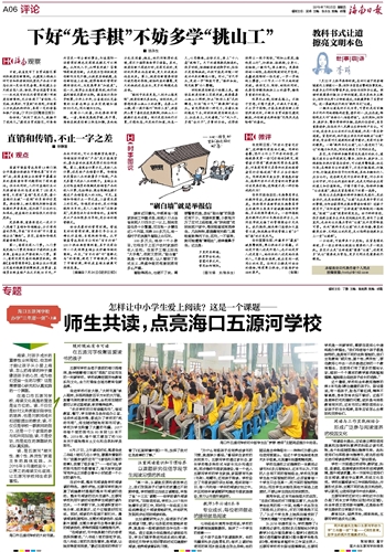 在海口市五源河学校,阅读文化氛围的营造是全方位的。读,不仅仅是针对义务教育阶段学生的培养,也是对教师成长和进取提出的要求;读,不仅仅是学校一群教师的努力,还是一个个家庭的参与和共同加油;读,不是空谈,而是实在的课题研究和认真实践。