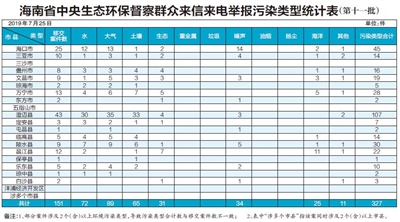 海南省中央生态环保督察群众来信来电举报污染类型统计表(第十一批)