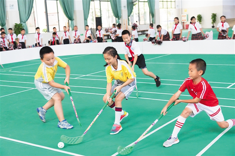 “一开始引进时,还有人担心会不会水土不服?完全没有想到这项运动深受学生们喜爱。”张筑英说。旱地冰球体育课,男女同学一同在场上训练和比赛,还打破了以往体育课不同性别的同学无法真正玩到一起的局面。学校以此项新兴体育运动为载体,让学生在校园体育活动中强身健体,舒展天性,张扬个性,涵养灵性。
