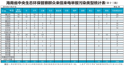 海南省中央生态环保督察群众来信来电举报污染类型统计表(第十三批)