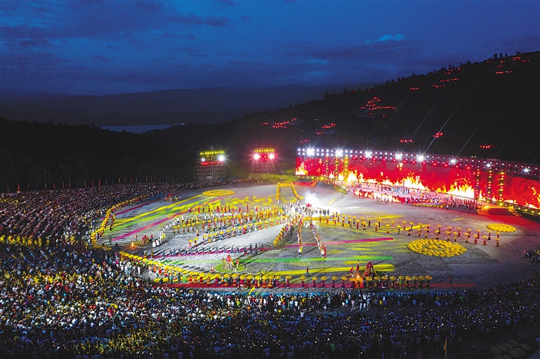7月26日,在西昌市洛古波乡火把场,西昌市的火把狂欢夜在服饰表演中拉开序幕。