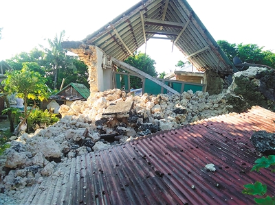 这是7月27日在菲律宾北部巴坦群岛的伊特巴亚特拍摄的地震中受损的房屋。