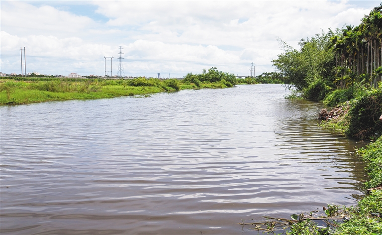 驱车经海榆西线,驶过望楼河,便来到人声嘈杂的乐东利国镇农贸市场,穿过镇墟没多远,向南拐入一乡道,一公里后,便来到了望楼村。村外是连片的稻田,而不远处,一条水量不大的土质沟渠隐藏在杂草丛中。村民告诉我们,这就是望楼沟,他们小时候常常在这条沟内摸鱼玩耍。