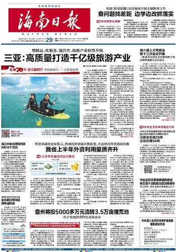 | 海南日报 头版 001 2019-07-291 2019年07月29日 星期一 |