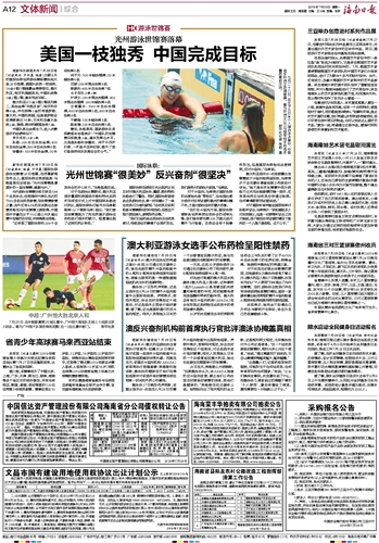 海南日报 文体新闻综合 012 2019-07-291 2019年07月29日 星期一