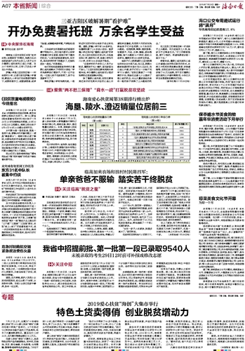 | 海南日报 本省新闻综合 007 2019-07-291 2019年07月29日 星期一 |