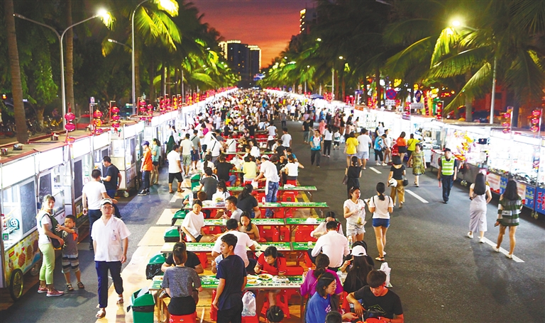 以夜市为代表,海南“夜经济”方兴未艾。国内各大城市在近两年也密集出台政策,扶持“夜经济”发展,因此,有学者将“夜经济”称为城市消费的“新蓝海”。海南建设国际旅游消费中心,要积极培育旅游消费新热点,以夜市为“引”,更多探索和思考正在逐渐展开。