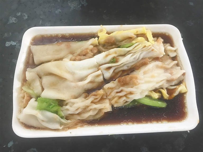 白嫩的肠粉出锅了,要浇上酱汁才算完整。酱汁的鲜咸里带有微甜,为米皮和馅料增添了更多层次的味觉。米皮的滑、馅料的饱满和酱汁的醇厚,既算不上重口味,更远离油腻,这是值得细细品味的。