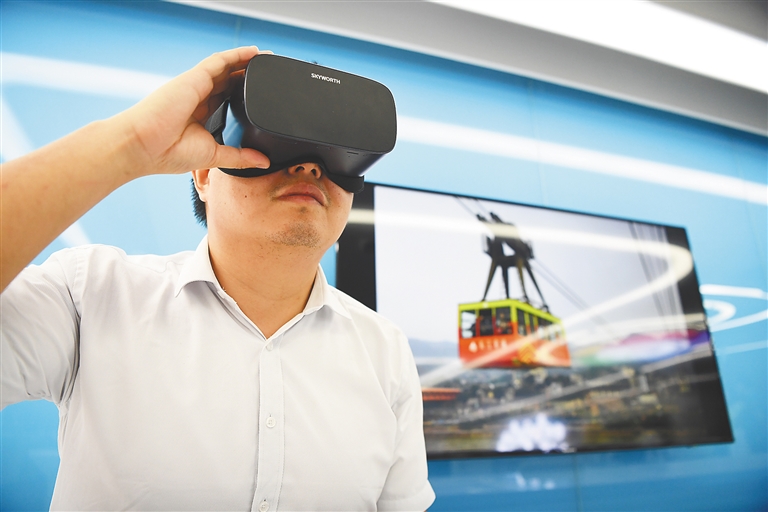 7月30日,在中国移动5G联合创新中心重庆开放实验室,工作人员演示“5G沉浸式体验”应用。