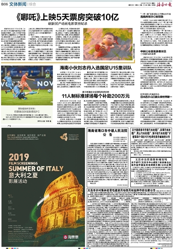 海南日报 文体新闻综合 014 2019-07-311 2019年07月31日 星期三