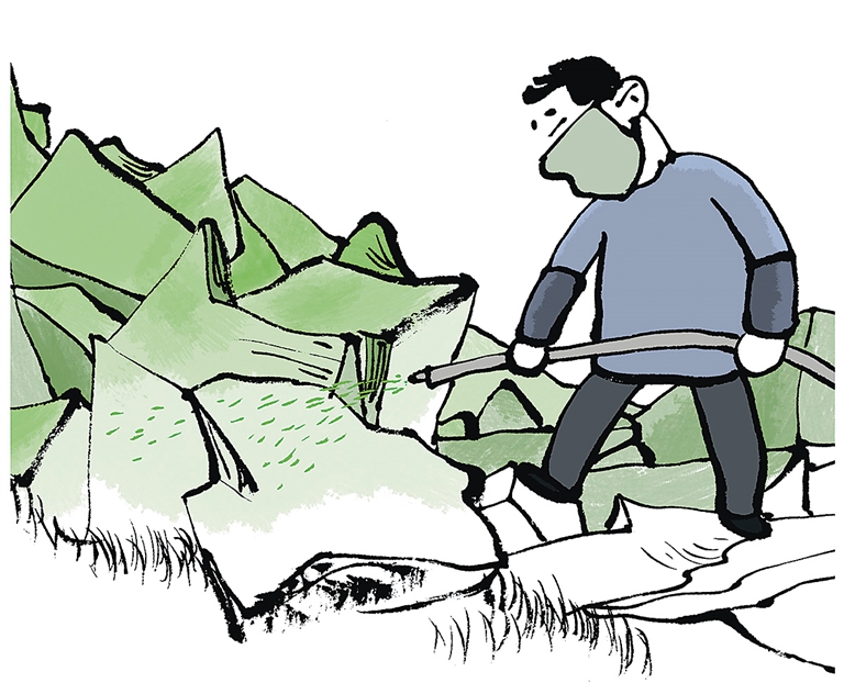 远看绿树成荫,近看绿漆莹莹,如此“绿色”,不仅不能环保,还会给环境造成二次伤害。如此弄虚作假、胆大妄为,岂不是把环保检查组当成瞎子、把人民群众当成瞎子?这样荒唐的做法,其实并非首例。曾有媒体报道,云南富民县用油漆“绿化”山坡,陕西华县一采石场毁坏山体后,刷绿漆来“遮羞”……凡此种种,不一而足,其目的都是用“刷漆”这种手段掩盖其破坏植被、破坏生态环境的丑行。对这种行为,不严惩,不足以治理乱象;不严惩,不足以维护法纪尊严。这正是:
