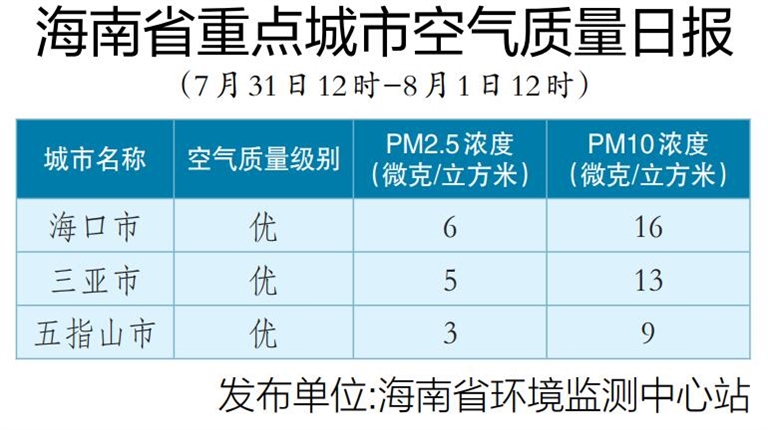 海南省重点城市空气质量日报