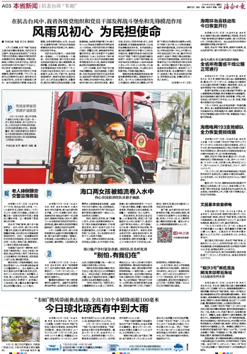 海南日报 本省新闻 抗击台风“韦帕” 003 2019-08-021 2019年08月02日 星期五