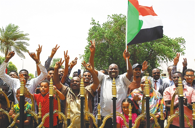 8月4日,在苏丹首都喀土穆,苏丹民众庆祝“宪法宣言”首份协议签署。