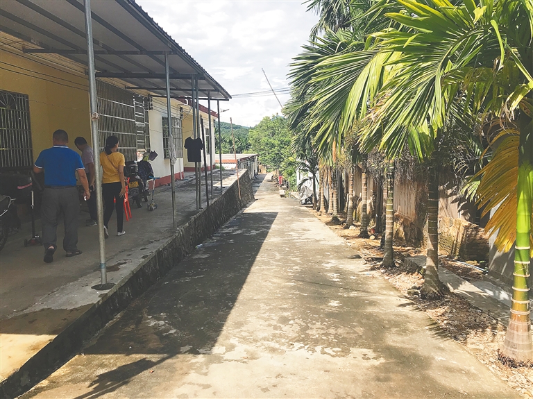 一条约3米宽的水泥坡路自上而下延伸,道路左侧是一间间整齐的平顶房,道路右侧则种植着槟榔等作物……这里是琼中黎族苗族自治县营根镇岭头居四队,不仅道路干净整洁,就连居民家中的物品都摆放得井然有序。