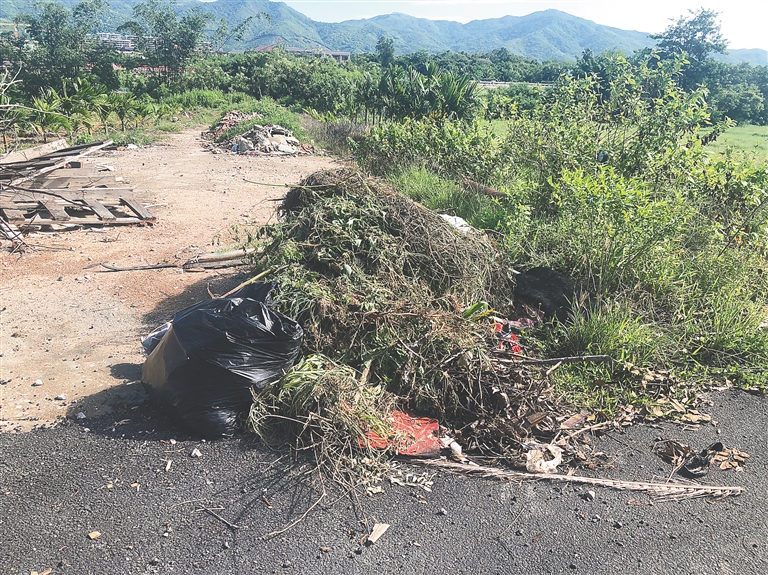 村道两旁,一边是一块标有“禁烧秸秆、垃圾所要承担的法律责任”警示牌,另一边则是枯枝落叶堆积而成的“小山”,旁边还有几个大袋垃圾,形成了鲜明的反差……8月6日,海南日报记者沿着村道绕行三亚市天涯区塔岭村,不时能看见杂物乱堆乱放等农村人居环境“脏乱差”现象。