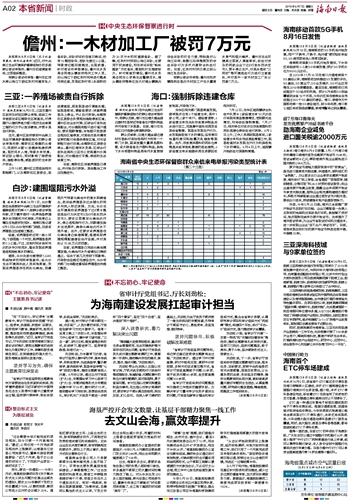 海南日报 本省新闻时政 002 2019-08-071 2019年08月07日 星期三