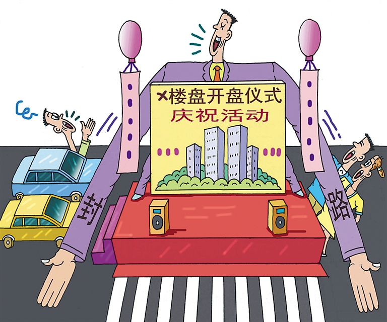 楼盘开盘,主干道封路,表演长达1小时,能不能“丰富市民生活”不清楚,但影响市民出行是肯定的。如此明显的侵占公共道路资源、妨碍居民出行的行为,就因为它是县里的重点项目,就能如此高调,让主管部门为其背书?县里重点招商项目受重视无可厚非,但不能在法律法规之外搞特殊,更不能干扰市民正常生活秩序。调动政府资源、占用公共资源替商家吆喝,这显然是逾越了公权力边界。假如每个“重点项目”都来封路表演这一套,城市管理岂不乱套,公共利益又何处安放?这正是: