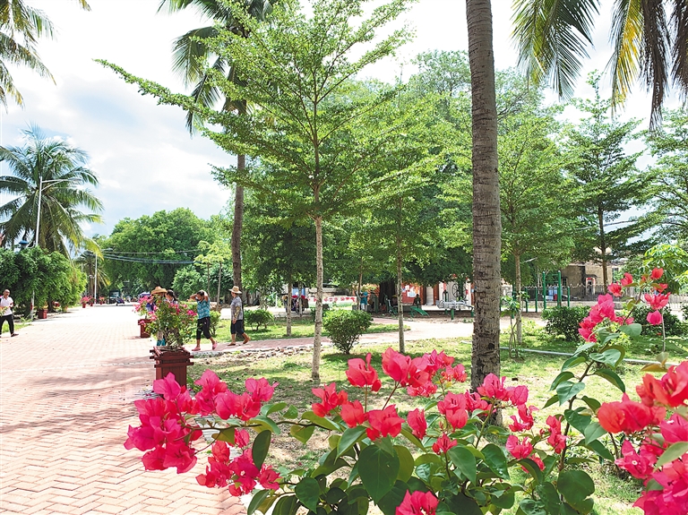 宽敞平整的水泥村道,斗艳的三角梅盛开在路旁,老年人日间照料中心、休闲花园、健身器材等生活设施一应俱全,村口的古树是纳凉的好去处……8月9日,海南日报记者走进昌江黎族自治县海尾镇南罗村,一派美丽乡村景象,处处透着安居乐业的舒适。