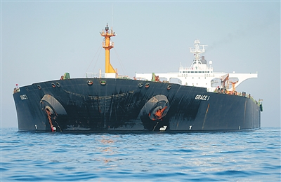 这是8月15日在直布罗陀海岸附近拍摄的油轮“格蕾丝一号”。