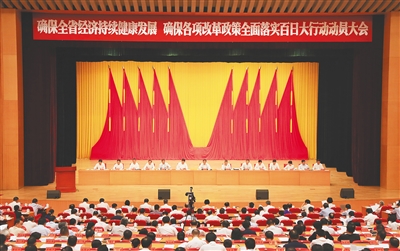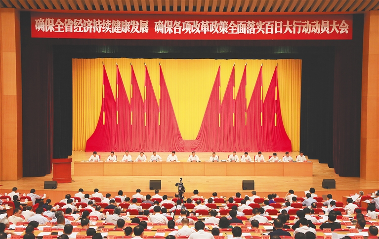 省委副书记、省长沈晓明就贯彻落实会议精神要求,迅速传达贯彻本次会议精神,进一步统一思想、转变作风、形成合力,以决战决胜的姿态推进“两个确保”百日大行动,全力推动投资项目落地,确保完成财政收入、消费、农民增收等全年目标任务,努力使外资外贸成为改革开放新亮点和经济发展新增长点,加快推进先导性项目,确保完成各项改革任务。