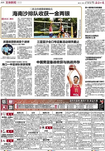 海南日报 文体新闻综合 011 2019-08-171 2019年08月17日 星期六
