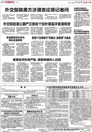 海南日报 中国新闻焦点 009 2019-08-171 2019年08月17日 星期六
