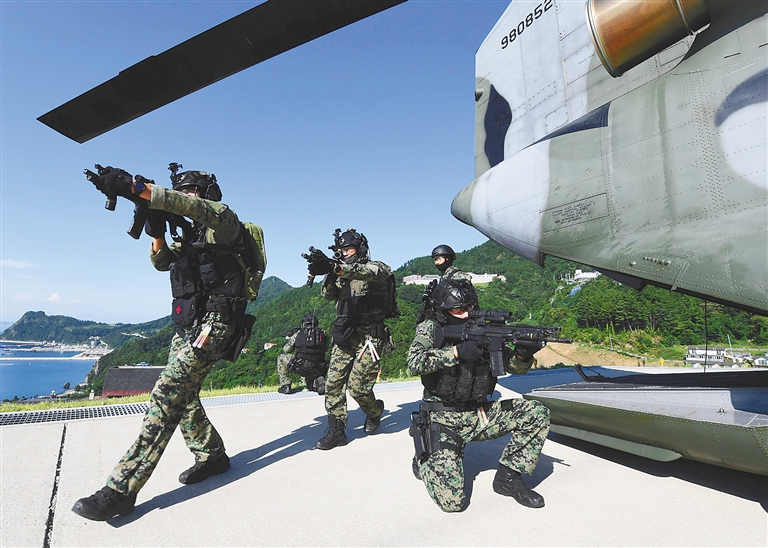 韩国军方25日宣布在独岛(日本称“竹岛”)附近海域启动为期两天的“独岛防御演习”,并将这一演习更名为“东海(即日本海)领土守护演习”。韩国总统府青瓦台发言人当天表示,“东海领土守护演习”不是仅仅针对日本,而是为了维护韩国领土和主权完整、每年例行举行的演习。新华社/路透