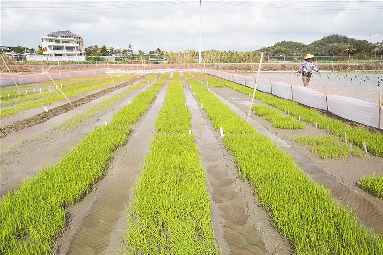 为了给南繁人搭建宽广平台,海南省整体布局,在三亚、陵水、乐东划定了南繁科研育种保护区26.8万亩,基本完成南繁科研育种新核心区土地流转任务,有18个省份完成签约;推动南繁公共实验室、生物育种专区等六大重点项目建设,总规划投资58.4亿元。