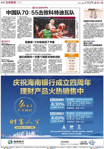 海南日报 文体新闻综合 008 2019-09-011 2019年09月01日 星期日