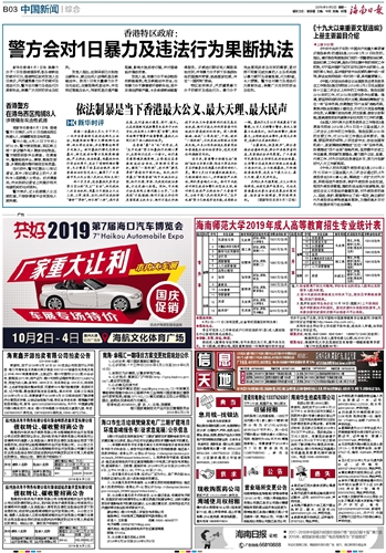 | 海南日报 中国新闻综合 015 2019-09-021 2019年09月02日 星期一 |