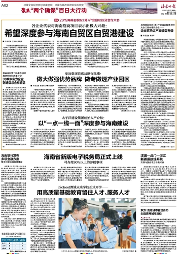 | 海南日报 确保全省经济持续健康发展 确保各项改革政策全面落实 聚焦“两个确保”百日大行动 002 2019-09-021 2019年09月02日 星期一 |