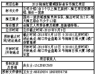 2019海南红珊瑚国际 音乐节演艺项目招标公告