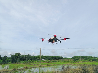 今年,海南农垦南繁产业集团有限公司积极引入科技力量,助力发展规模化、标准化、智能化现代农业。图为在该公司的昌江制种基地,无人机在进行病虫害防治,240亩的田地只需花费一个半小时。图/通讯员 施泽坤 文/海报集团全媒体中心记者 吴思敏